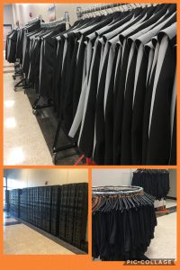 During uniform distribution, 1-2 volunteers will be assigned to help make sure pant and sleeve length is proper. Those serving in this manner may sit on the floor for an extended period of time. 1-2 volunteers may help with administrative tasks and helmet distribution. The remaining volunteers will be assigned one student at a time to walk through the fitting process, including choosing uniform pieces for students to try on and verifying they fit properly. Volunteers will be instructed on how to best perform each of these tasks.