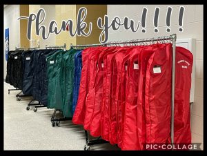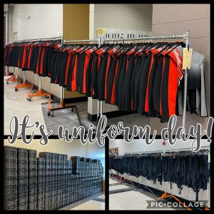 The Uniform Coordinator is responsible for overseeing the organization, distribution, and collection of uniforms. The organization generally happens before band camp, uniforms are distributed during band camp, and collected after marching season is over. This person also ensures there are supplies available to fix uniforms as needed while at events (but do not necessarily need to do the fixing themselves) and oversees adjustments to hems, etc. as needed during the season.
